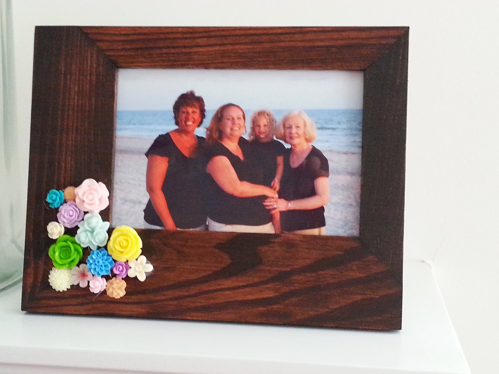 Practical Scrapper Kristy used resin flowers added to a wooden frame (that she stained too!) to highlight a picture of "The Girls" from a recent vacation.